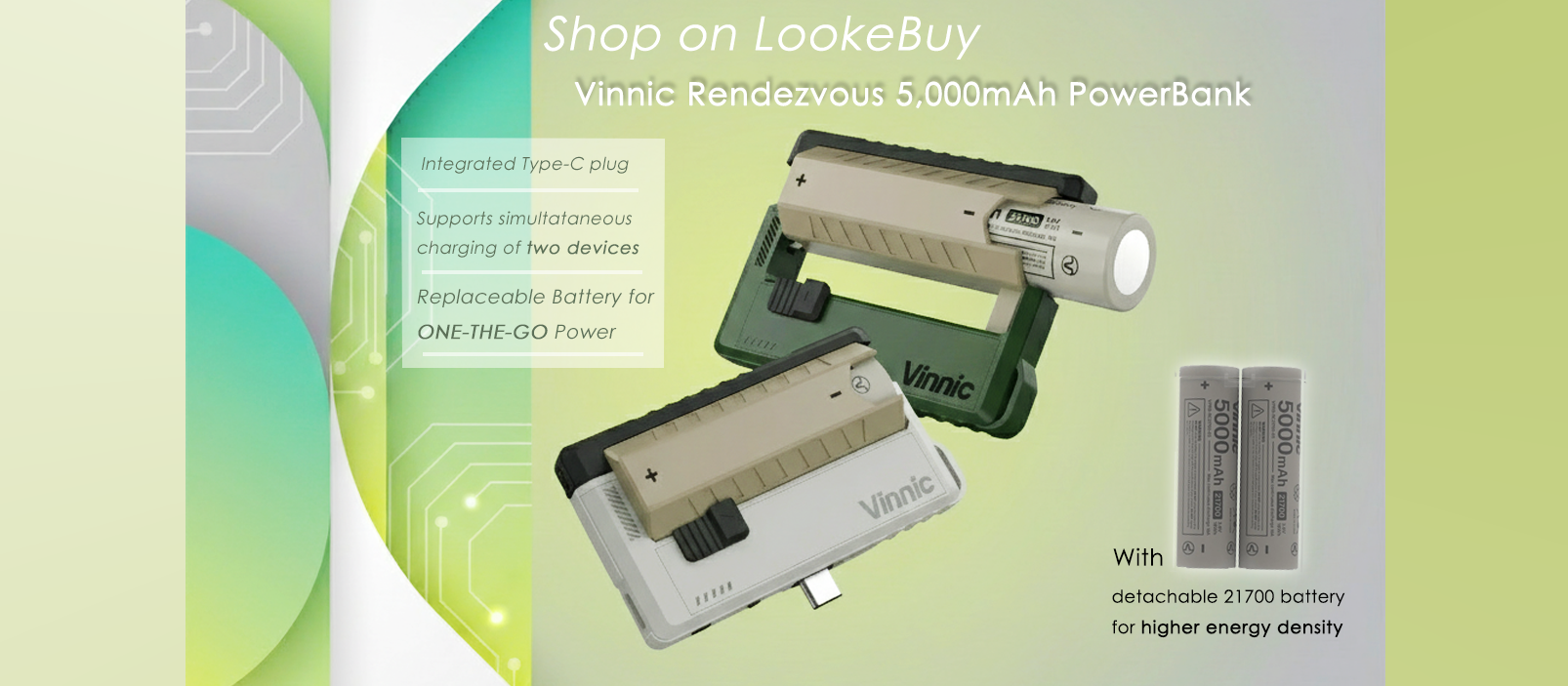 Vinnic Rendezvous 5,000mAh 可換電Type-C 直插式 雙輸出行動電源 (附21700電池兩枚)